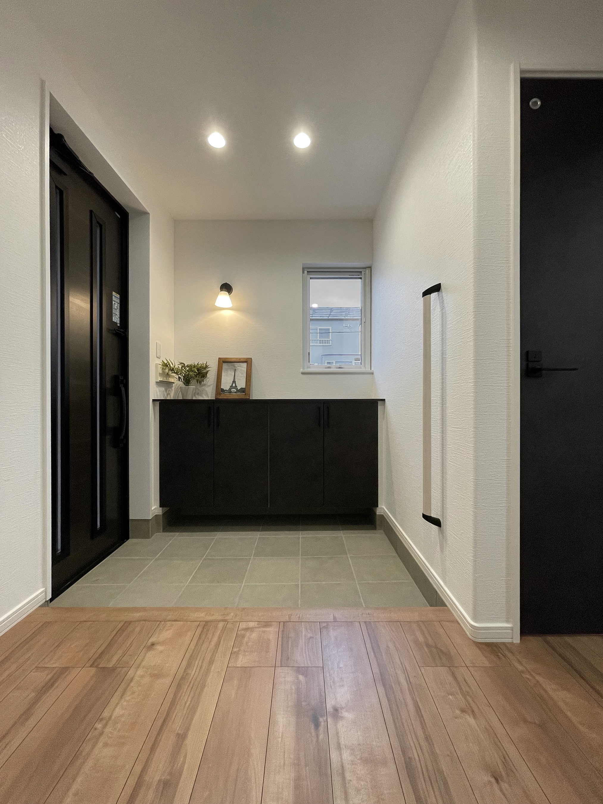 ■特徴・デザイン・間取り…床材に使用したオーク調の木目と、モノトーンの建具やクロスが折合い、心地良く暮らしに寄り添い親しみを感じる住まいです。物置の設置やガーデニングが楽しめる庭のある南西角地の敷地。アスファルト舗装済みの乗用車2台分の駐車スペースやインターロッキングのアプローチも併設されたオールインワン仕様。玄関にはベビーカーやコート類を収納できる便利なストレージを併設。キッチンからはリビングが見渡すことができ、小さなお子様がいるご家庭にも安心。二階には書斎のある主寝室や天候や昼夜を気にせず洗濯物を干すことのできるエキストラフロアを併設するなど実用的で工夫された住まいです。