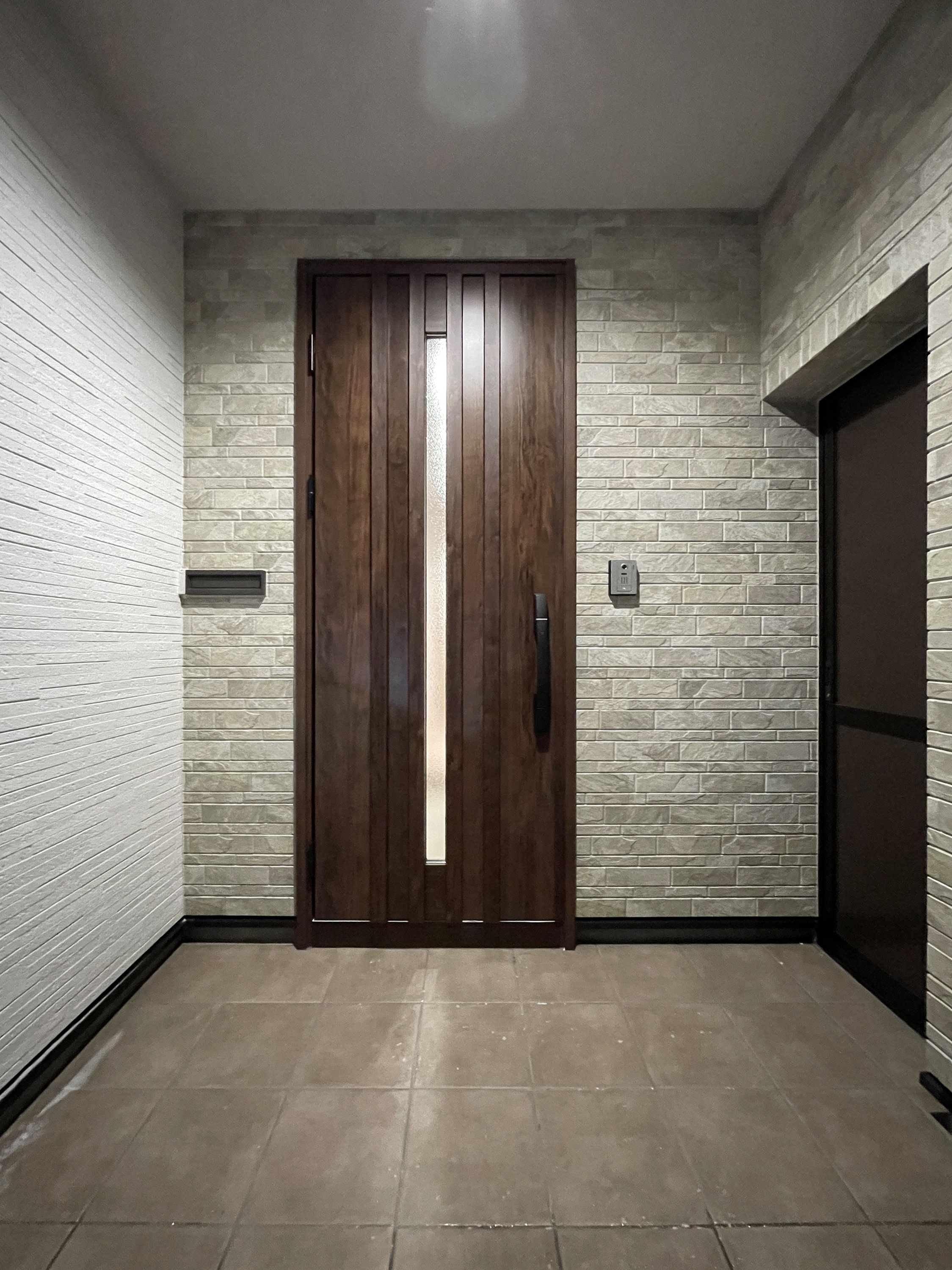 ■特徴・デザイン・間取り…濃淡がはっきりとして自然な木肌感が美しいペカン柄の床材に、同色系統のブラウンの建具を使用し、纏まりのある落ち着いた印象のインテリアに仕上げました。自然な陽光が吹抜けから入る明るく開放的な住まいです。アスファルト舗装された乗用車二台分の駐車スペース。玄関アプローチはインターロッキング施工済みのオールインワン仕様。玄関ポーチ横には除雪用具などの収納に便利な外部収納を併設。玄関ホールから洗面室を介してキッチンへとつながる衛生的な2wayの動線。太陽の陽がよく入る開放的な吹抜。二階ホールには天候問わず洗濯物を干すことができるエキストラフロアを配置するなど暮らしやすさを追求した住まいです。