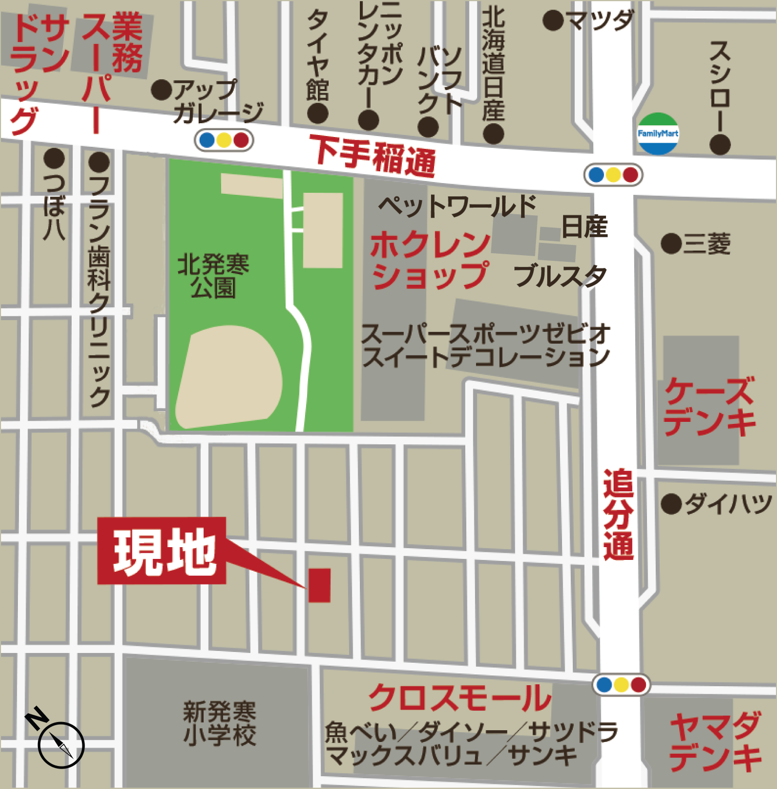 ■ロケーション…日々の生活に便利な業務スーパーやサンドラッグ、ケーズデンキなどの大型商業施設や銀行、病院などの各種商業施設が揃う「下手稲通」「追分通」などの主要幹線道路に近接し、小学校などの教育施設や公園なども生活圏にあり、お子様のいるご家庭にも安心の環境です