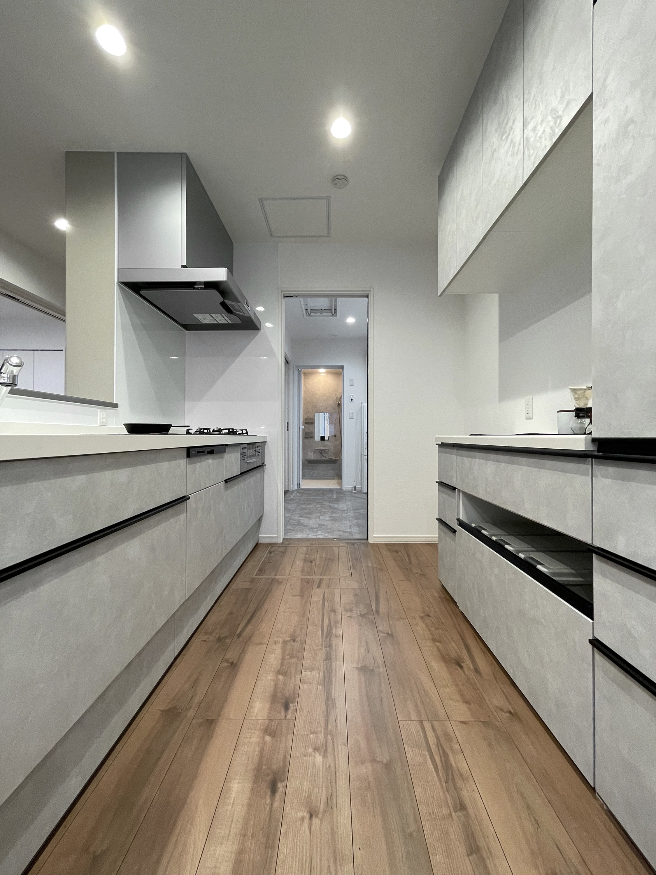 ■特徴・デザイン・間取り…流れるような木目のフロアにダークブラウンの建具を合わせ、細部までデザイン性に拘った内装です。乗用車2台分の駐車スペースはアスファルト舗装されたオールインワン仕様。玄関には土間続きのベビーカーなどの収納に重宝するストレージを併設。キッチンから家族の様子が窺えリビング・ダイニング・洋室と一体化した安心のレイアウト。二階のゆとりのある広さの10帖の主寝室は4帖のウォークインクローゼット付き。階段ホールには天候問わず洗濯物を干すことのできるエキストラフロアを配置するなど暮らしやすさを追求した住まいです。